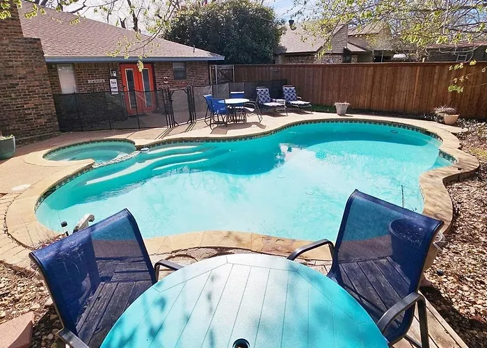 Welcome to the captivating Pool Theater Convenient Location 4Bedroom2 Bath, ideally located in the heart of Lewisville. This charming retreat offers a perfect escape for families and groups seeking comfort and convenience, with the vibrant city life of Dallas just 30 kilometers away. Nestled close to essential amenities and attractions, this property seamlessly blends relaxation with accessibility.